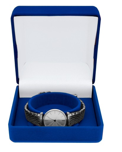 ✅ PUDEŁKO WELUROWE Welurowe pudełko  na zegarek   granatowe/lub czerwone  otwierające się pod kątem 90 stopni W środku wypełnione wkładką wykonaną z weluru ,w którą można idealnie włożyć prezent. które mogą powodować niepożądaną zmianę barwy biżuterii .Pudełeczko jest przeznaczone na wszelkiego  rodzaju zegarki. ➡️Dane Techniczne Zewnętrzny : 90 x 90 x 39 mm Wnętrze : 85 x 78 x 30 mm Kolor wkładki : granatowy/lub czerwony/lub bordowy. Zastosowanie : zegarek